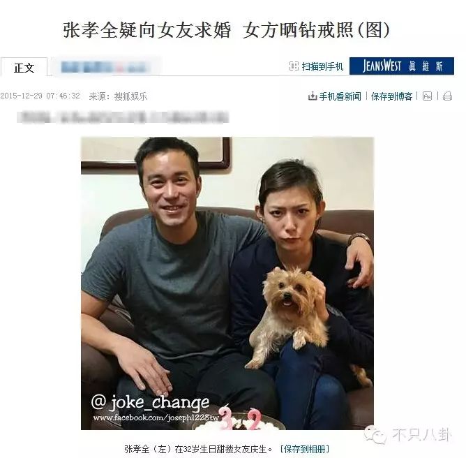 针对这个传闻,目前张孝全的经纪人未接电话也未回应简讯……看样子八九不离十了~
