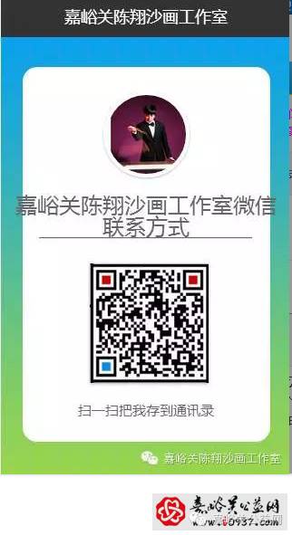 嘉峪关陈翔沙画培训中心现推出沙画公开体验课,嘉峪关陈翔沙画培训班盛情邀请社会各界喜欢沙画艺术的小朋友和大朋友,前来培训中心感受一“沙”一世界, 一“画”一天堂,来体验沙画的魅力,现将本条消息在朋友圈连续转发5次,每天1次,即可获得一个沙画体验培训名额,快快动手,转发起来。转发够的朋友们请及时联系陈老师,为您安排体验时间,沙画体验时间7月2日早上9:00——18:00,地址:嘉峪关市明珠小学对面,大唐教育二楼,陈翔沙画培训班,报名电话189 9377 1106,陈老师。