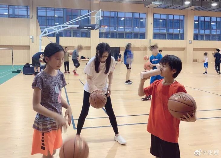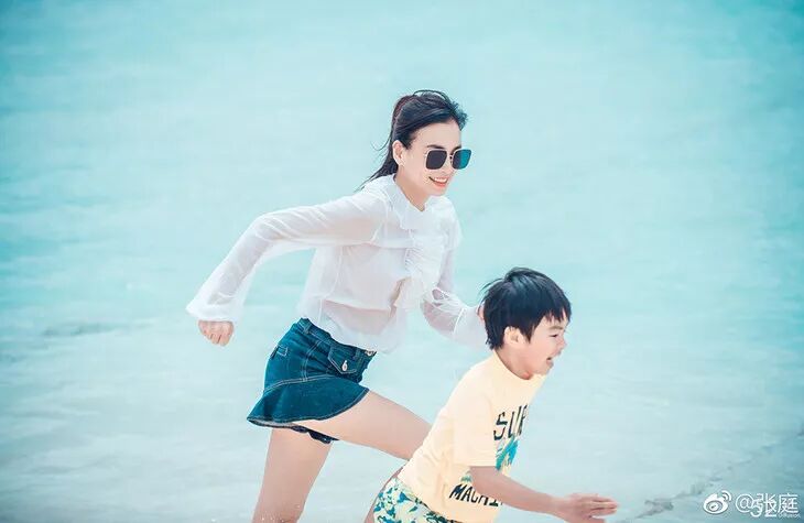 张庭还是像以前我们在古装剧里认识的样子,可爱好动。陪孩子们打球、海边闲逛……都是一副活力满满的样子。