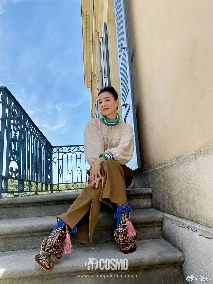 相比较闺蜜陶虹的成熟路线,张庭的少女系穿衣简直就是一部罗曼蒂克“少女记”。
