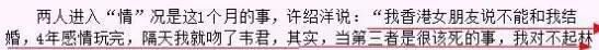 消息被曝光之后,许绍洋火速道歉了,说自己该死。接着还自曝接吻前因后果——我女友不能和我结婚,我隔天就吻了她。