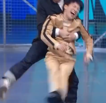 尤其是他在《王牌对王牌》里这段,因为体重太轻被当成了工具人一样甩来甩去。