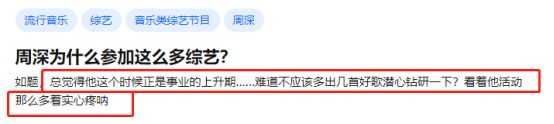 周深确实参加了很多商业活动,但其中也有不少是《声入人心》《歌手》《蒙面唱将》这样的音乐综艺。