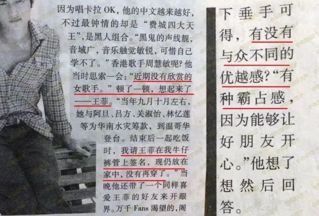 那时,谢霆锋特意带朋友过去开眼界,并且请王菲在牛仔裤上签名,之后他便再也没有穿过这条裤子,一直将其小心地存放在家中。