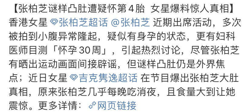 前段时间,张柏芝参加《浪姐》,微微凸起的肚子成功抢占众人的视线,外界疯传她已经怀上第四胎,而孩子的父亲则是谢霆锋。