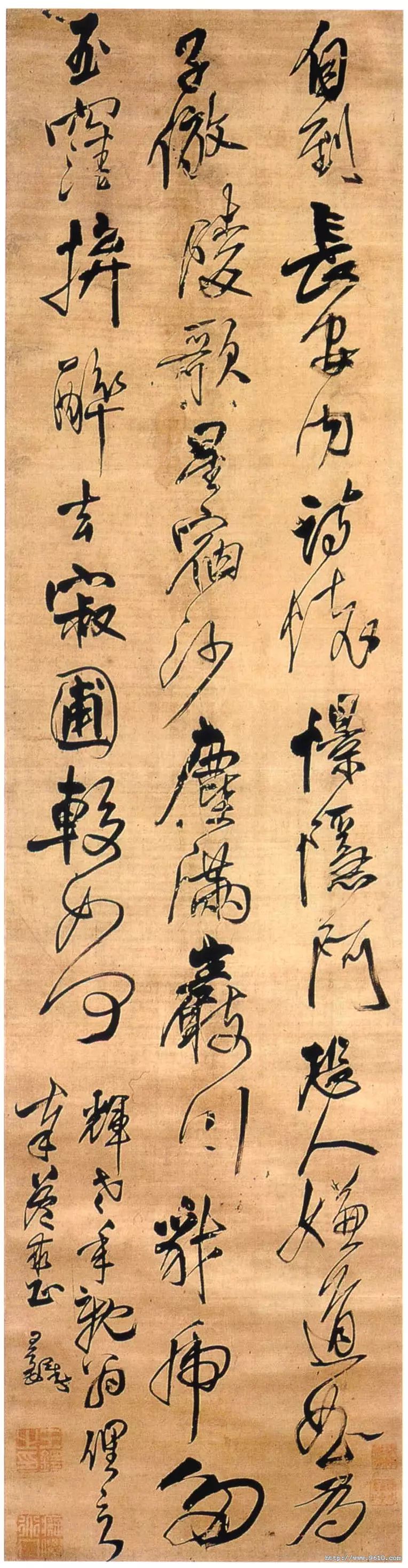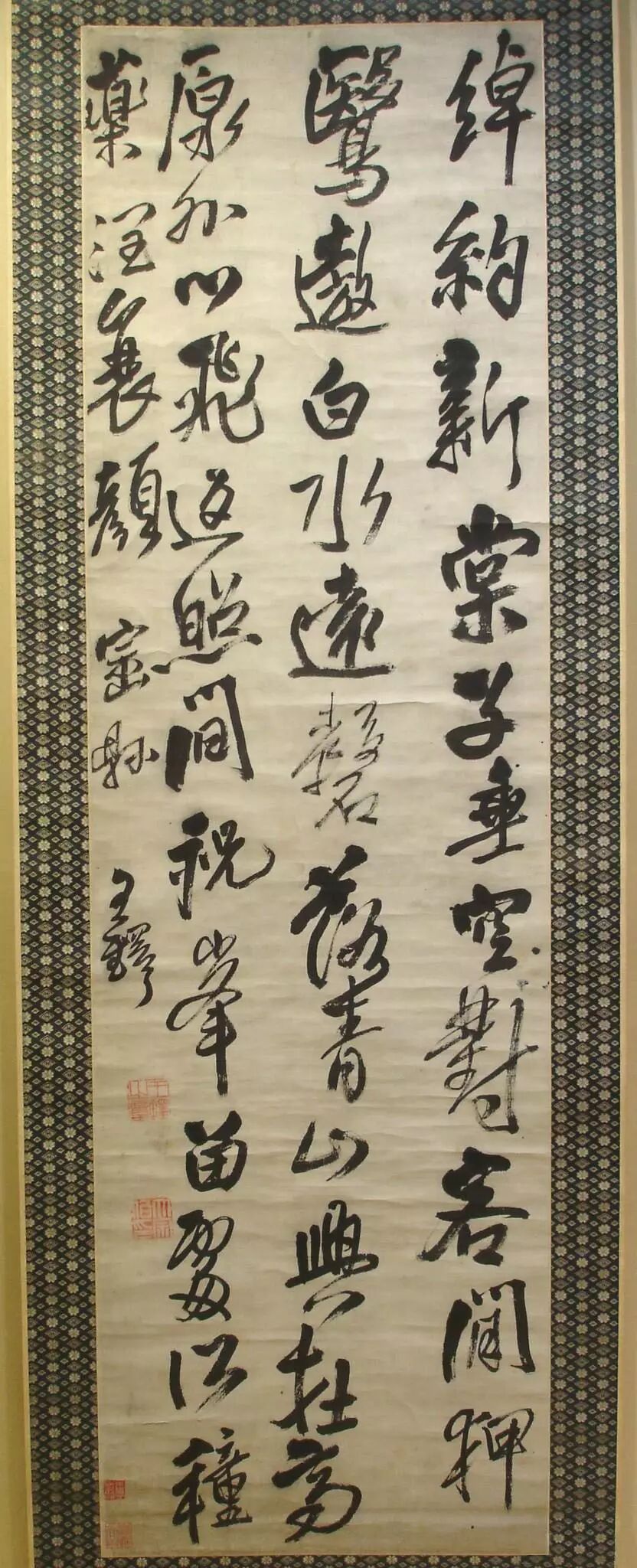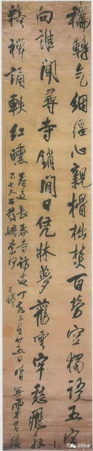 王铎《行草书长椿寺旧作立轴》 纸本 绫本 纵186.5cm 横52.4cm 广州美术馆藏