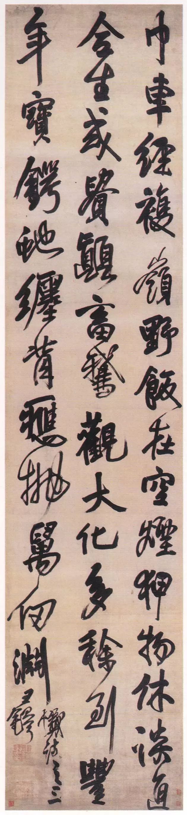 王铎《草书录语》轴,绫本,纵254.2cm,横48.2cm。