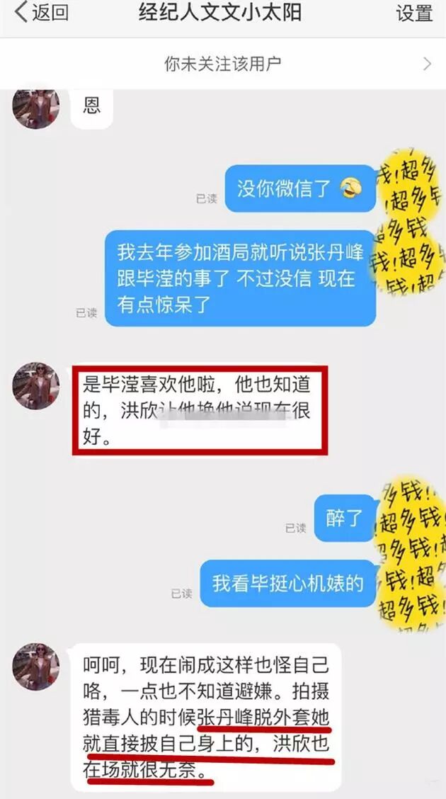今天还有网友扒出疑似张丹峰前经纪人的一段聊天记录。