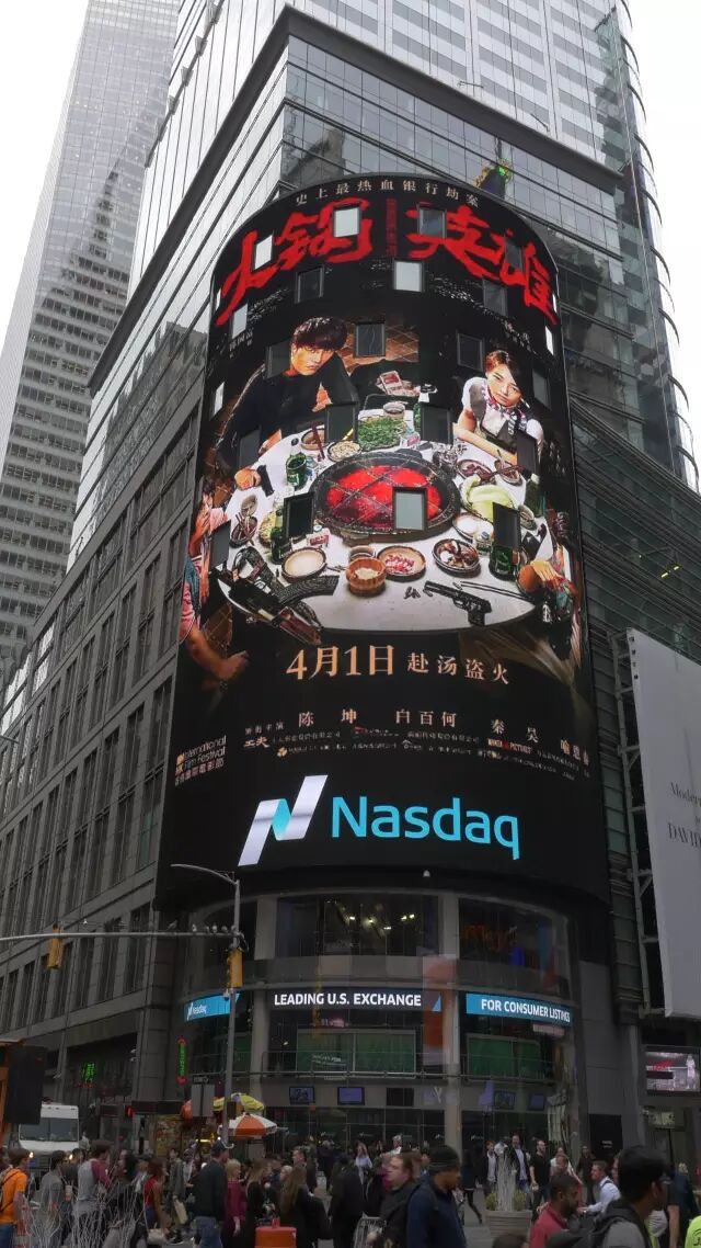 就在中国影迷们为蝙蝠侠本•阿弗莱克和超人亨利•卡维尔来华奔走尖叫的时候,素有“世界的十字路口”之称的美国纽约时报广场惊现电影《火锅英雄》“别有洞天”版巨幅海报。海报中,透过一个洞口,陈坤、白百何、秦昊、喻恩泰四位主演围炉开涮火锅,周围却出现了武器、巨款等物品,而本该其乐融融的聚餐场景,四位主角却表情严肃,似在谋划着什么不可告人的“惊天阴谋”。作为曼哈顿的心脏地带和最为繁华的娱乐购物中心,纽约时代广场年均游客流量超过4000万人次、人员流量1亿人次,被视为“吸引全球目光”的最佳窗口之一。此次国产“火锅英雄”成功“占领”如此重地,与美国英雄隔空对战,引发大量关注和讨论,有网友欢乐开涮道:“别大战了,没有一顿火锅解决不了的事,如果有,那就两顿。”还有不少网友表示支持:“中国电影走出去很好啊,为《火锅英雄》点赞。”