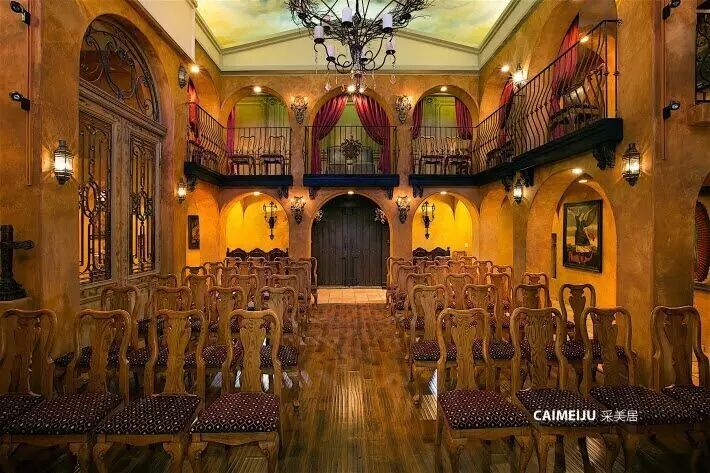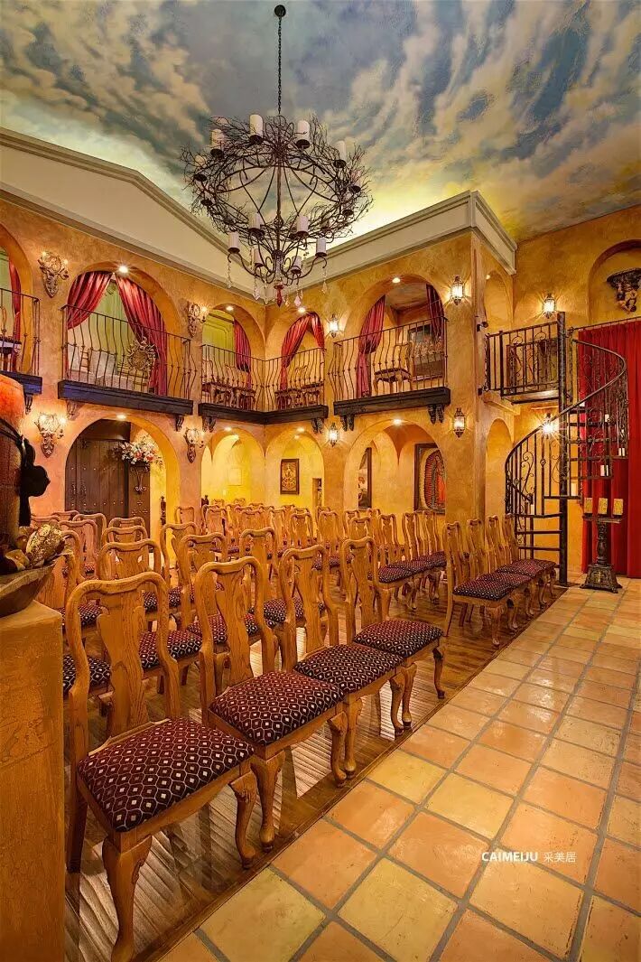 这幢房产最奢华的部分无疑是中世纪建筑风格的两层楼礼拜堂,能容纳74个座位,深红色的帷幕、阳台和枝形大吊灯,令它看起来就像是一座剧院。