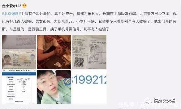 其实,在去年的时候就有网友爆料,此人名叫叶成乐,不仅吸毒,而且还长期在上海行骗,而且还有网友爆料,叶成乐还欺骗过罗中旭的前女友倪睿思,而且倪睿思还为他生了一个孩子,而且根据倪睿思的微博显示倪睿思却是有个孩子,而且至今不知道孩子的父亲是谁。