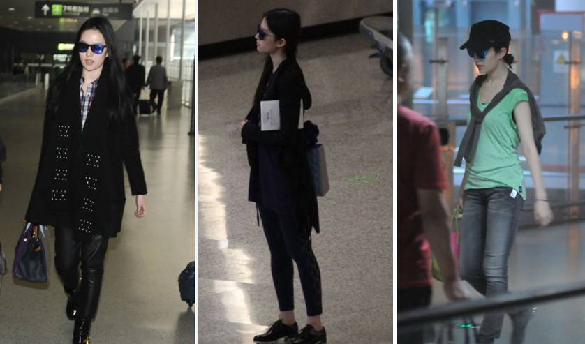 回首女神组,其实不愿意秀腿的真心不止刘亦菲一个,国民女神高圆圆其实也是一个不爱秀腿星人,机场抓拍中,无处可藏的小腿粗也是让人很是吃惊,女神真是藏的深;