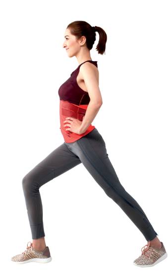 侧身慢慢下蹲,双手抬高过头,上身保持挺直的状态下将左腿往前跨出一大步,将身体的重心移动到一边腿上;不但对腿部有拉伸的作用还能增强腿部的力量,还能锻炼身体的平衡感,虽然过程比较痛苦,但是效果是很好的。