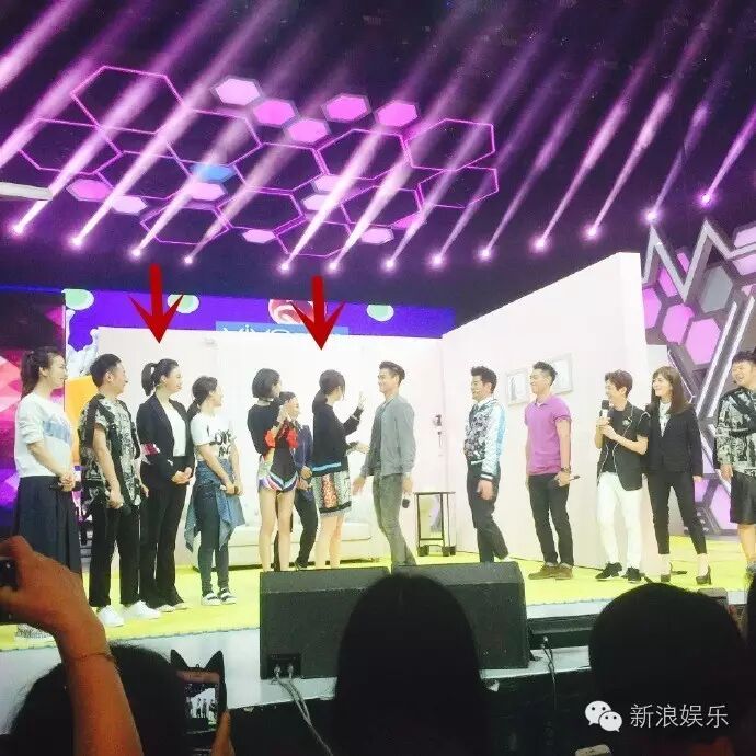 还有一张在台上排排站的路透,这么看起来,蒋欣就又显得有点膀大腰圆了。