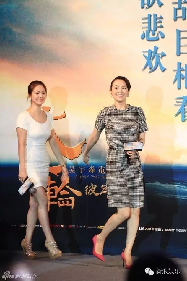 其实这张里的两个人都蛮好看的,但是章子怡赢就赢在高度,还是那句话,当两个人差的不太多的时候,个子高的人总是出挑的!