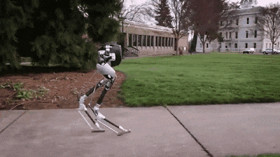 生物拟态的另一个范例是机器人“Cassie”。它看上去就是两条腿,像一只没有身体的鸟。最有意思的地方是,Cassie的创造者并没有说:“好啊,就按照鸟腿的样子,复制一对出来。”而是通过计算,得出效率最高的解决方案,所得的结果恰好类似于鸟腿。但复制自然,尤其是制造类人机器人的挑战是,还得同时复制生物体无可比拟的能效。如果你想模拟出蚂蚁大小的机器人,并用传统电机,也就是超级笨重的执行器来驱动它,那我只能祝你好运。