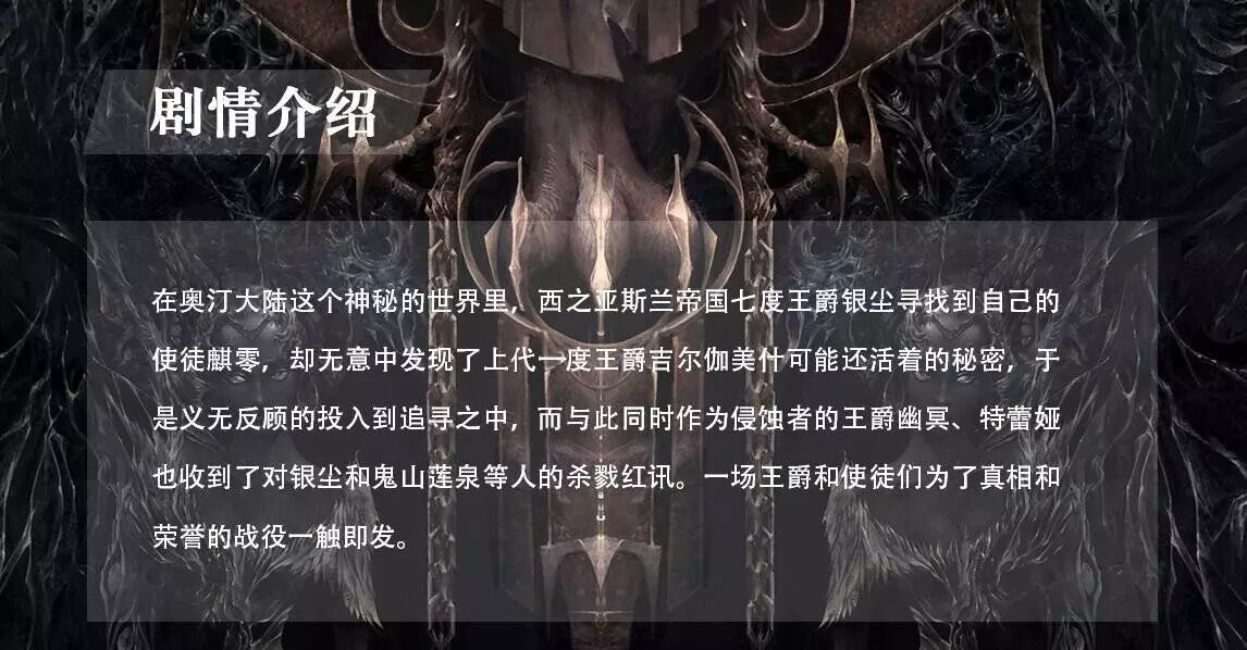爵迹主要故事内容是讲发生在神迹的奥汀大陆,按照水、火、风、地四元素,分割成四个国家(水之亚斯兰帝国、火之弗里埃尔帝国、风之因德帝国、地之埃尔斯帝国)。在这个世界中,充斥着神秘莫测的魂术,弥漫着权力和欲望的激烈争夺。这四个国家中,最强等级的魂术师被称为王爵,每个国家的王爵各有七位,王爵继承人为使徒,他们则代表着整个国家最巅峰的力量。