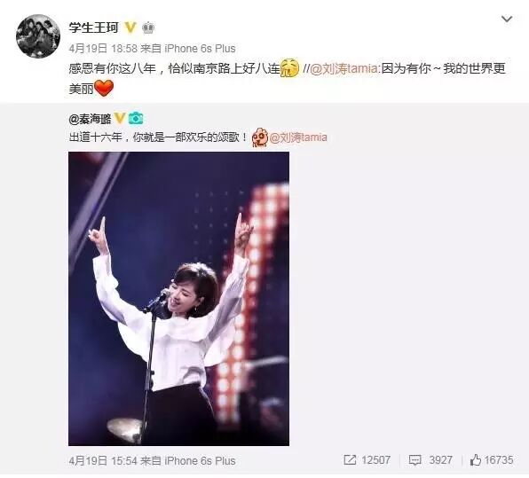 丈夫王珂也时常在微博上表达自己对刘涛的喜爱。
