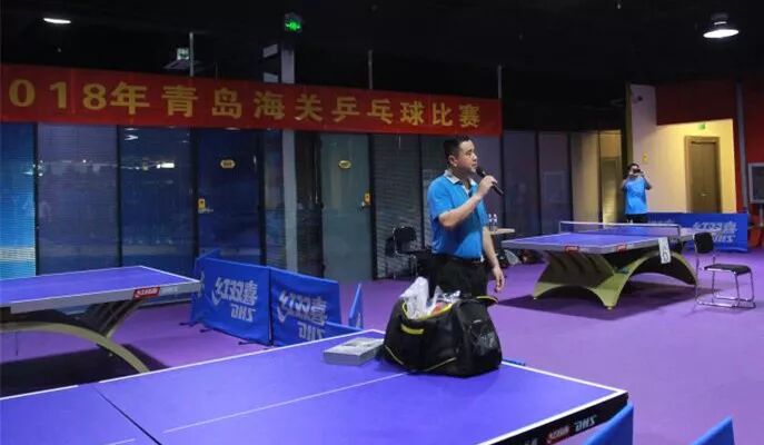 青岛海关工会主席任伟宣布2018年青岛海关乒乓球比赛开始