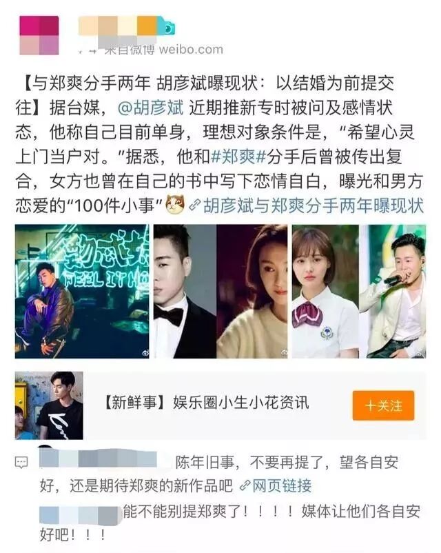 然而即便胡彦斌和郑爽已经分手两年多了,依旧没能逃过前女友魔咒啊。