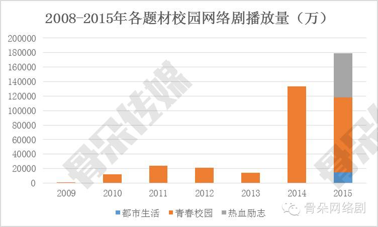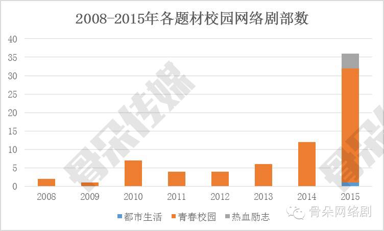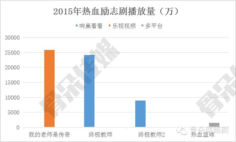 2015年,出现了《我的老师是传奇》、《终极教师》(1和2)、《热血篮球》等4部热血励志题材的校园网络剧,占当年校园网络剧总数的11%,播放量6.1亿,占当年校园网络剧总播放量的34%,题材回报率明显高于平均水平。这也是校园网络剧题材发展到2015年出现的新种类,这一趋势值得关注。