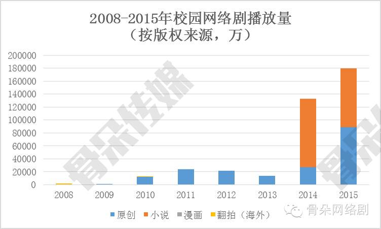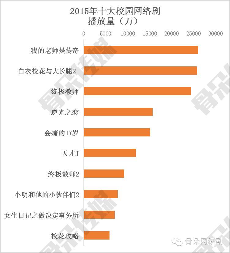 2015年,《我的老师是传奇》、《白衣校花与大长腿2》、《终极教师》、《逆光之恋》、《会痛的17岁》等名列播放量前十,其中前六部播放量过亿。