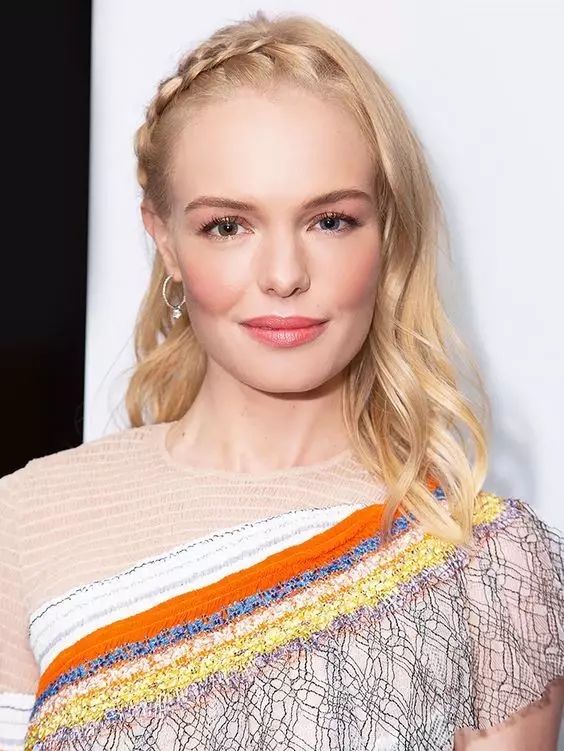 这个发型就是只扎一条辫子了,另一侧是自然放下的,你可以把前额刘海斜分,辫发量比较多的一侧就OK。