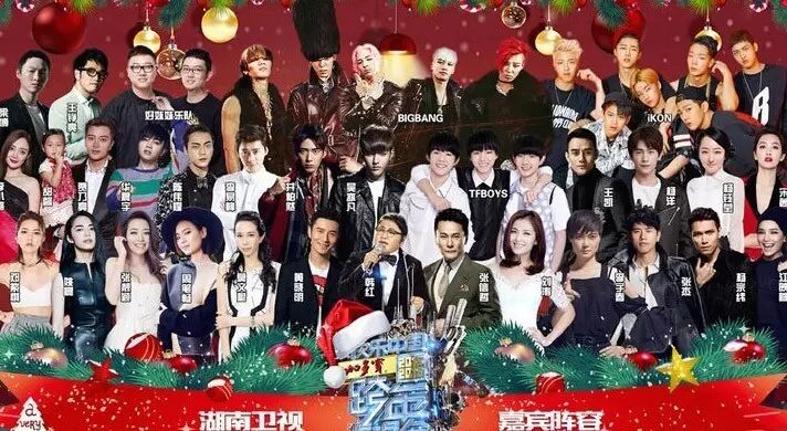 TFBOYS、王力宏、林忆莲、韩红、刘涛、张杰、黄晓明、张靓颖、胡彦斌、邓紫棋、周笔畅、蔡健雅、陈楚生、杨洋、李易峰、张天爱、华晨宇、钟汉良、陈乔恩、杨钰莹、江映蓉、贾乃亮、关晓彤、大张伟、好妹妹乐队、陈粒、马可、尹正,SNH48、何炅、谢娜、李维嘉、吴昕、杜海涛、杨乐乐、汪涵、钱枫oscarqian、大张伟、一博、沈梦辰、梁田-Eliza等。