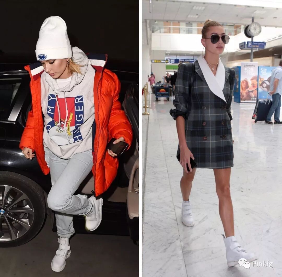 盲区慎点:高帮马丁对腿型也是有一定要求,比如海狸Hailey Baldwin的搭配就有点一言难尽,吃瓜群众不知所以然。