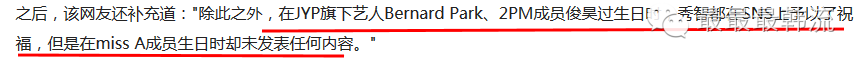当然,也有说法是秀智当天有行程所以没法儿出席孟佳的生日聚会,但不管真相如何,miss A队内不和,秀智被排挤的传闻已经传出去了。