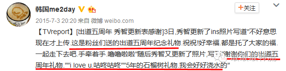 2015年7月3日,秀智更新了自己的INS,向粉丝们表达了感谢↓