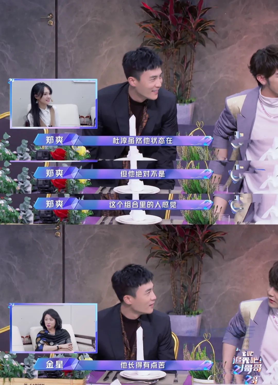 至于杜淳,郑爽直接判定“他长得就不是这个组里的感觉”,金星更是直言他长得有点苦。