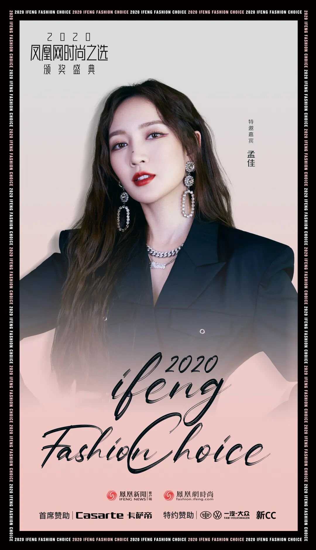 2020年12月9日,一年一度的凤凰网时尚之选颁奖盛典也悄然而至。“焕新之美,续写荣耀”,凤凰网时尚将携手卡萨帝、一汽-大众新CC共赴盛事。孟佳即将亮相2020凤凰网时尚之选颁奖盛典,让我们拭目以待。