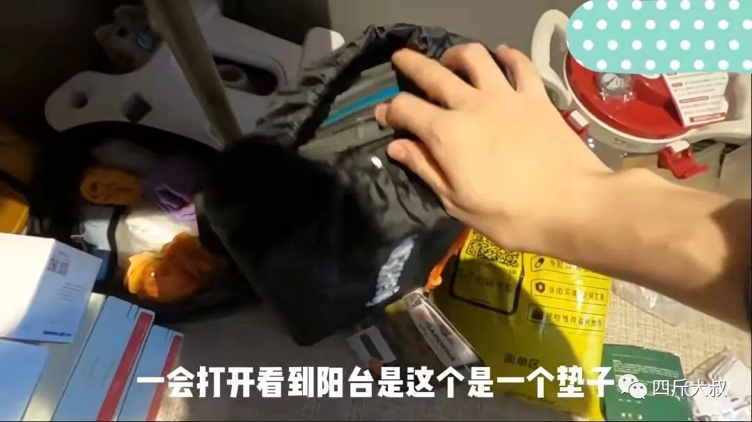 因为买的种菜的箱子还没到,苗苗用了一个置物架当箱子,撸起袖子就开始干活,地上密密麻麻大包小包的都是苗苗准备的物品,包括各种土啊、石头啊、阳台垫子啊。