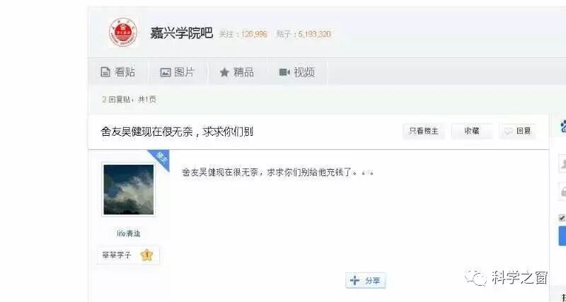 六万多网友自愿向“吴健”同学校园卡内充钱,真相竟然是... 科学之窗 内地男星 2017-09-14 21:58:35 338 创作不易,用心坚持,欢迎请BaGua喝几杯爱心咖啡!打赏并支持本文 打赏并删除本文 来来来,刚沉静的朋友圈又被一个人刷爆了。。。。。什么情况,经了解,原来有论坛爆出一个某学校校园卡充值bug,充1元可以得到两个红包,赚1.4元以上,文中以嘉兴学院“吴健”的校园卡为示例,很多不明真相的网友纷纷充值,消息一传十、十传百,已经有数万人在给“吴健”的校园卡充钱,截至晚上20点,金额已经达到5万多元。下面来自截图具体该学校怎么处理呢?大家都拭目以待吧! 创作不易,用心坚持,欢迎请BaGua喝几杯爱心咖啡!打赏并支持本文 打赏并删除本文 感谢您的支持鼓励,我会继续努力的!文章地址:用户邮箱:打赏金额:USDT 请输入数字点击”去打赏“,即可进行打赏支持本文章哦 吴健 About the Author 科学之窗 功能介绍:探索人类最新科学未来发展趋势,关注日益严重的信息跟食品安全!普及科学常识,治疗生理与心灵健康,揭露最神秘的中医养生! Related Posts 六万多网友自愿向“吴健”同学校园卡内充钱,真相竟然是... 2017-09-14 21:58:35 发表评论