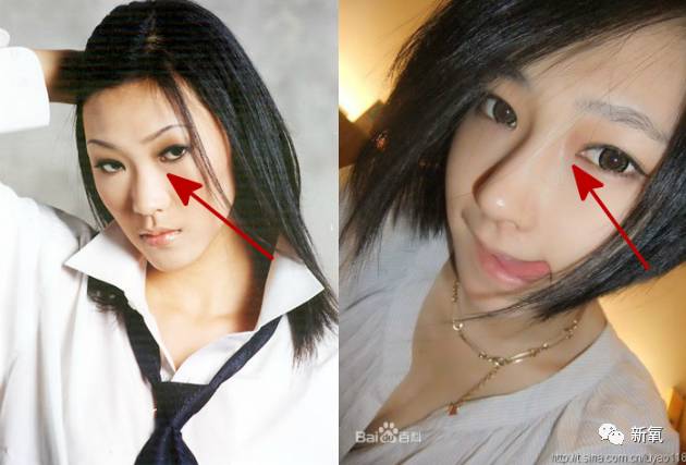 来看看她眼睛部分的变化,内外眼角都和之前不一样,不但眼高拉伸了,眼形也变长了。