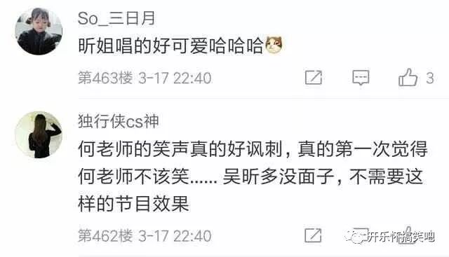 吴昕最近的遭遇惹得粉丝超心疼,最近《快乐大本营》来了一批代班主持,看过节目的观众都知道李浩菲受快本导演力捧。可李浩菲招黑体质,就是得不到观众的认可。甚至还抢吴昕的镜头,节目中吴昕还好几次被关话筒,然而何炅却力挺李浩菲而忽视吴昕。这让吴昕粉丝极其不满。然而这一次居然还嘲笑吴昕,粉丝再也不忍了,直批何炅:何老师的笑声真讽刺,因为这个笑声有点讨厌何老师。