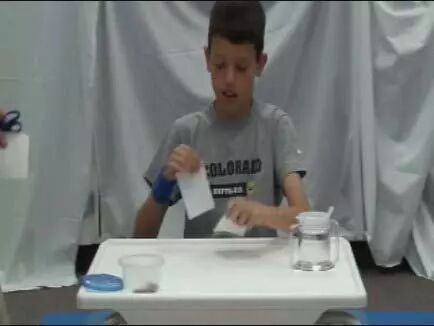 指示孩子将纸撕成两半。用标有 5cm 刻度的尺去测量撕开的长度。
