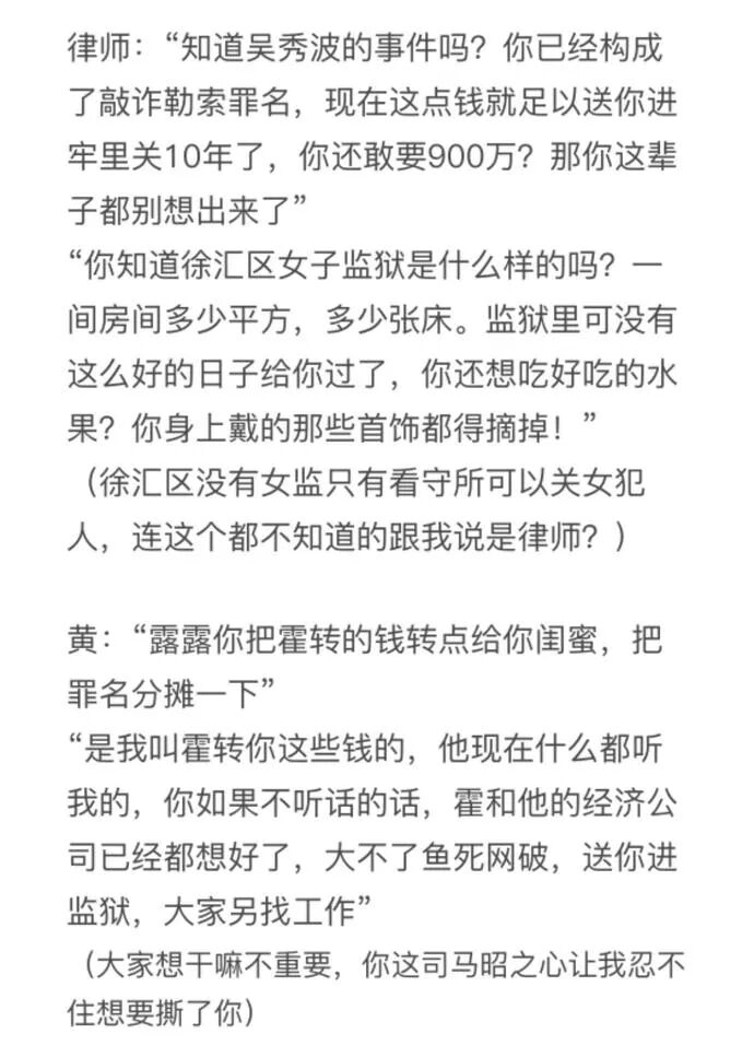 这里先提一下,陈露曾说,被霍尊女性好友和律师进行了长达五、六个小时的威胁。