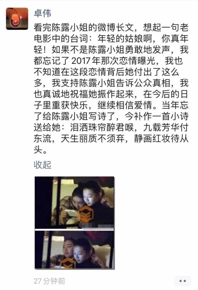作为陈露9年爱情的见证者,卓伟特意发了朋友圈。