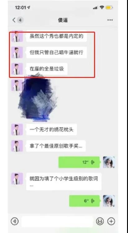 他还吐槽在座的全是垃圾,“一个无才的绣花枕头拿了个原创歌手奖,就因为填了个小学生级别的歌词”。