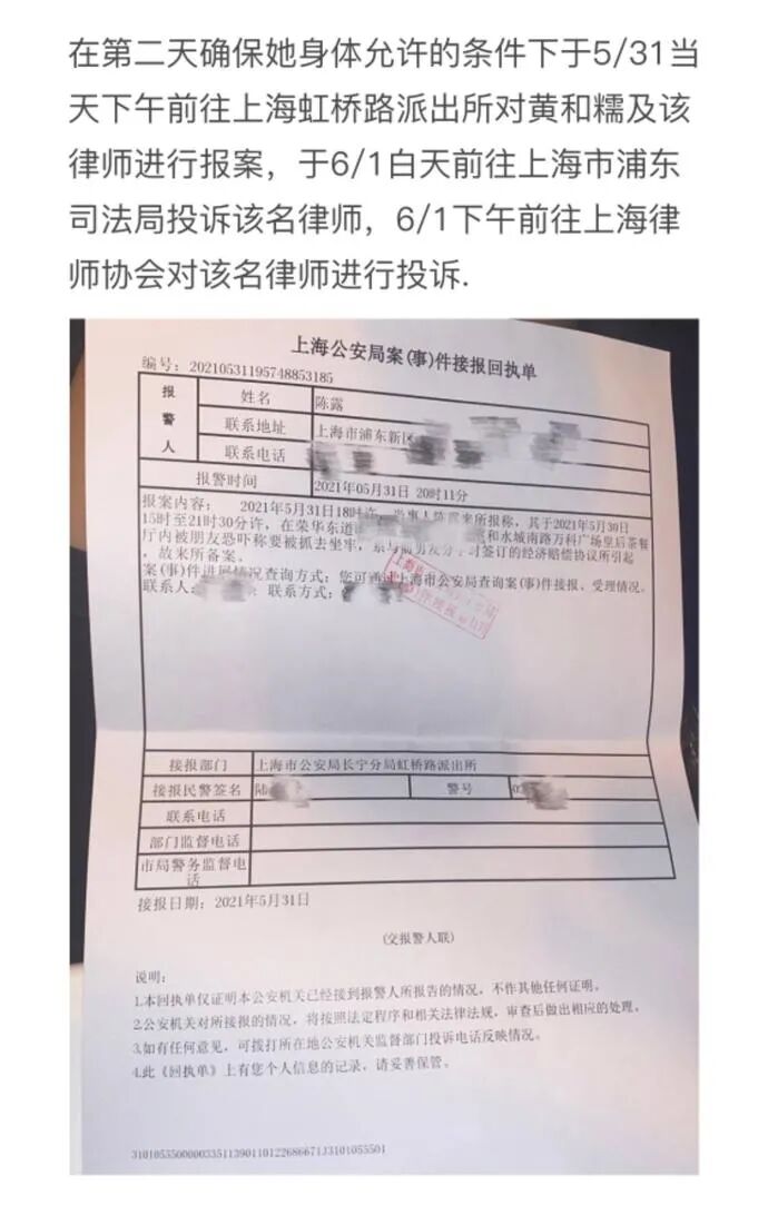 隔天直接带着陈露去派出所报案了,并前往上海浦东司法局投诉了威胁陈露的律师。