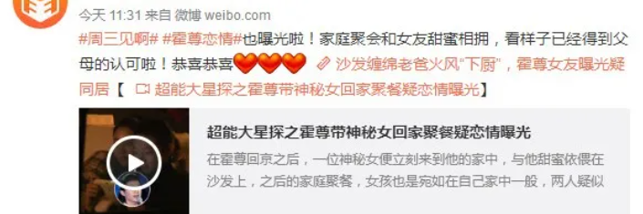 当时他们已经恋爱5年,霍尊已经火了3年了。