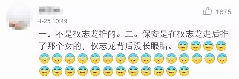 现在粉丝的立场已经站在是保安推的但是没推倒,权志龙那会儿已经走过去了反正这件事情他什么也不知道。