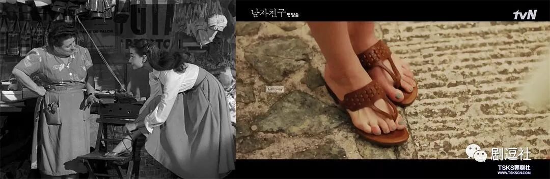 在罗马一日游里,安公主自己在街头买了一双鞋,而《男朋友》里,则是振赫为秀贤买了一双,都是凉鞋。