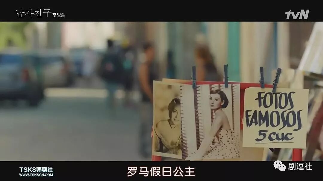《罗马假日》里,安公主在接见活动时站累了,自己偷偷脱了一只鞋。秀贤在土墙上,也有一只鞋掉了。