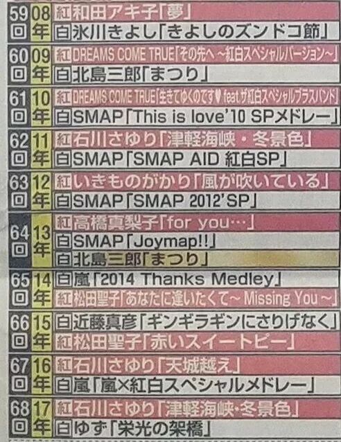 已经成为历史,成为永远无法超越的存在的,曾经的国民爱豆团体SMAP,近十年来就4次担任白组的压轴。