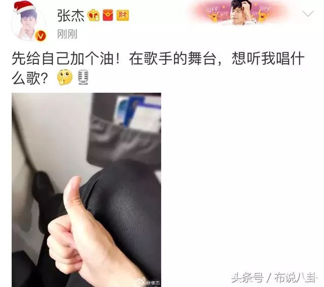 几年前,张杰曾经在《我是歌手》的舞台上给大家带去了非常精彩的演出。今晚,张杰将再一次登上《我是歌手》的舞台。在《我是歌手》第五季登场,张杰心情颇佳,在微博上晒出自己的大拇指