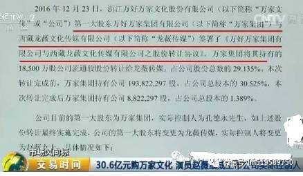 具体交易是这样的:万家文化第一大股东万家集团将持有的1.85亿股股份转让给西藏龙薇文化传媒(以下简称龙薇传媒),转让股份占公司股份总数的29.135%,作价约30.6亿元人民币。成交后,龙薇传媒将成为万家文化最大的股东。