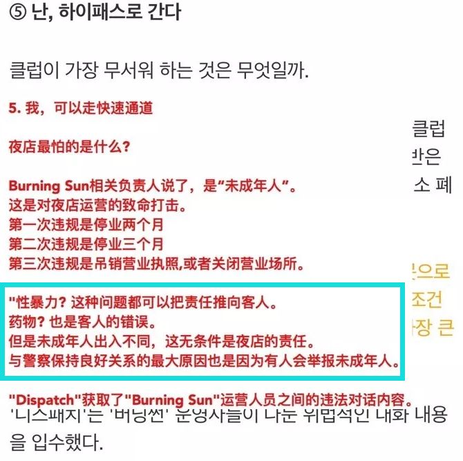 况且Burning Sun夜店里的管理人员默许这种操作模式,高层也相继被爆出XD新闻,要说李胜利是清清白白,毫不知情?很难说通。
